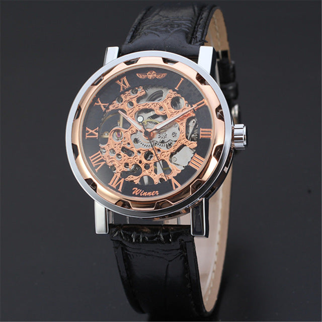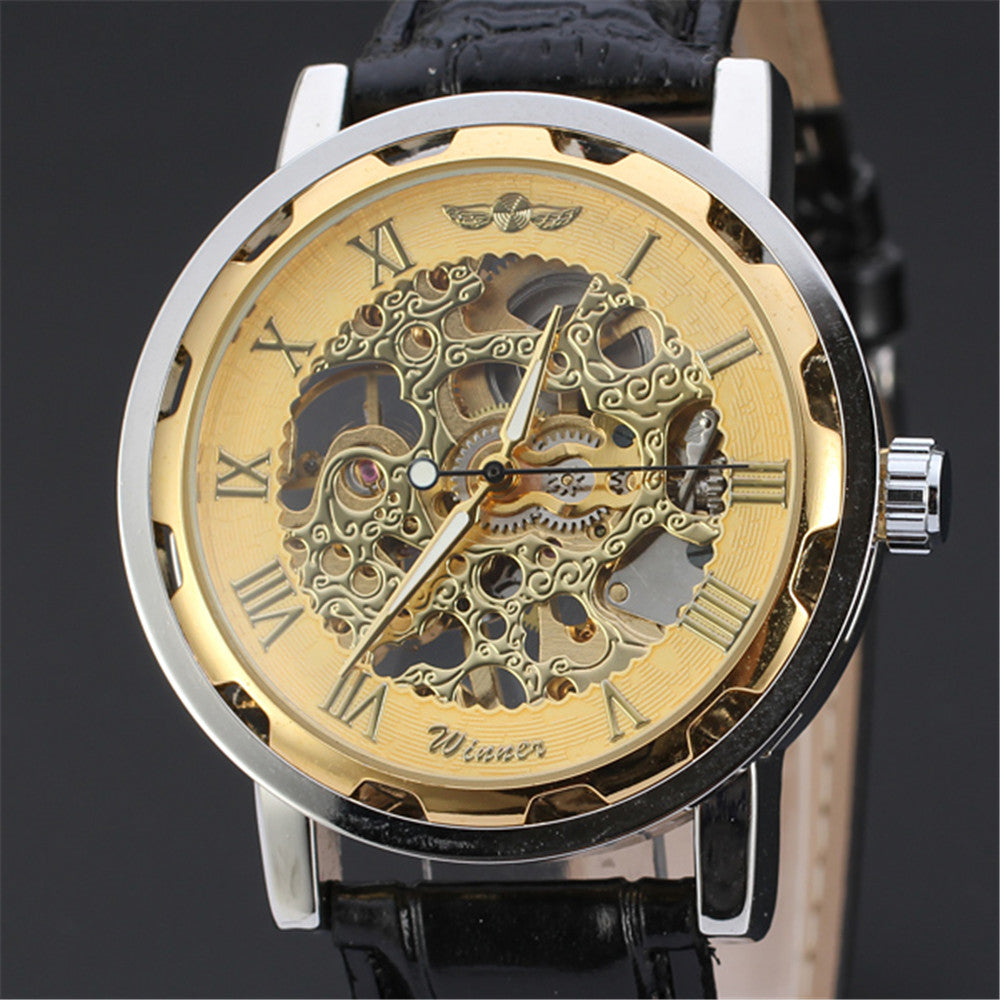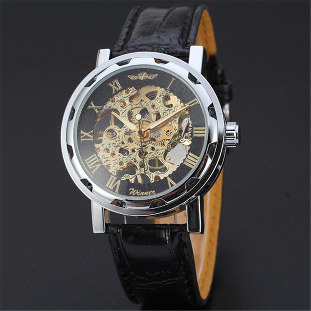 power: skeleton hollow carve 3D LOGO hand wind mechanical